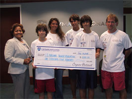 Cayman National's donation to the Cayman Islands National Squash Association (CINSA) was in support of their Junior Squash Players who will compete for the Caribbean Junior Squash Championship title in Bermuda in July.